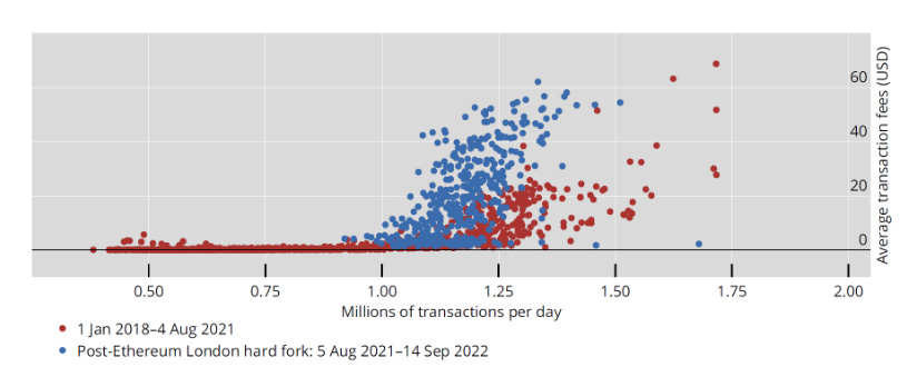 When many users want to transact at the same time, they bid against each other for limited block space, and fees spike much as taxi fares surge during rush hour. Figure 1 shows how Ethereum gas fees exhibited sharp spikes during periods of network congestion, such as during surges in decentralised Finance (DeFi) activity or spikes in the minting of non-fungible tokens (NFTs).